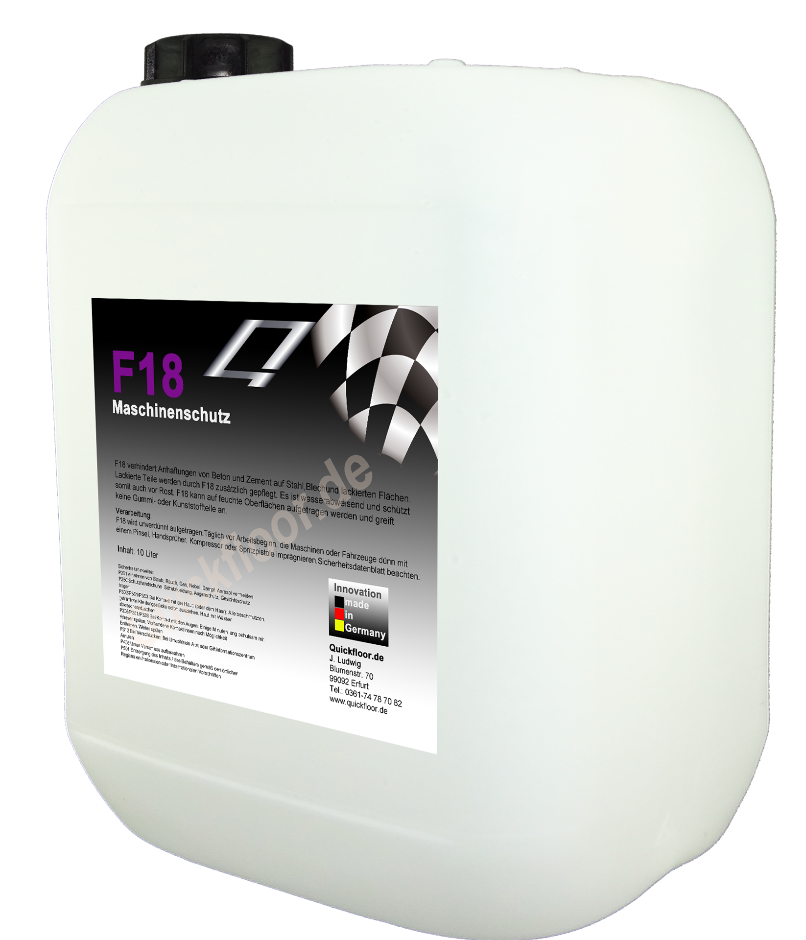 F18 ist ein Beton- und Zemententferner für Baumaschinen, Baufahrzeuge, Betonmischer und Betonfahrmischer. Bei Maschinen und Geräten, die mit Frischbeton in Kontakt kommen, besteht die Gefahr, dass sich an den Oberflächen hartnäckige Betonverkrustungen ablagern. Die Beseitigung dieser Ablagerungen kann zu längeren Stillstandzeiten führen. Die regelmäßige Vorbehandlung mit unserem hochwirksamen F18-Mischerschutz minimiert den Reinigungsaufwand von Maschinen und Geräten. So lassen sich nach dem Arbeitsprozess Verkrustungen durch einen harten Wasserstrahl einfach lösen. Mit Mischerschutz-Produkten werden grundsätzlich nur die Stellen an Fahrzeugen und Geräten behandelt, die später mit dem Frischbeton in Berührung kommen. Ein Einsatz dieser Pflege- und Schutzmittel bietet sich in folgenden Bereichen an: Betonmischer, Betonpumpe, Fahrmischer, Betonkübel, sonstige Geräte und Werkzeuge.