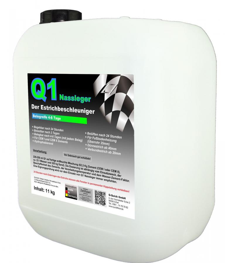 Q1-Nassleger Erhärtungsbeschleuniger ist speziell für Nassleger zur schnelleren Weiterverarbeitung mit allen Bodenbelägen entwickelt worden.