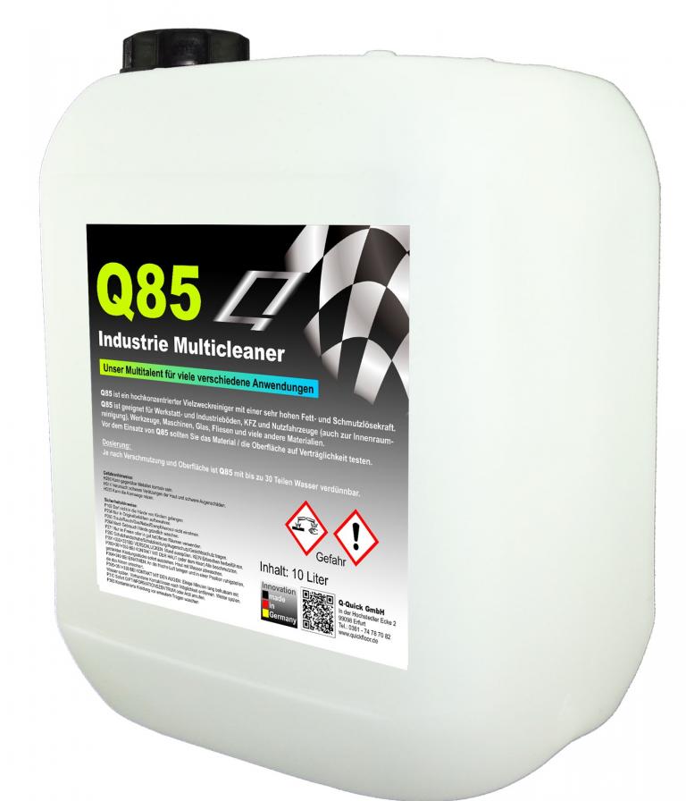 Q 85 ist ein hochkonzentrierter Vielzweckreiniger mit einer sehr hohen Fett- und Schmutzlösekraft.