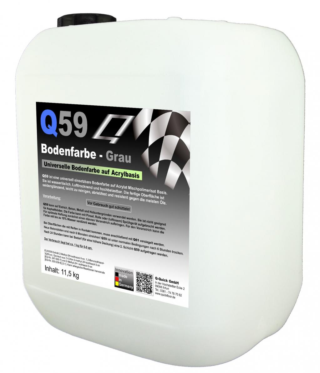 Q59 ist eine universell einsetzbare Bodenfarbe auf Acrylat Mischpolimerisat Dispersion Basis. Sie ist wasserlöslich, Lufttrocknend und hochbelastbar.